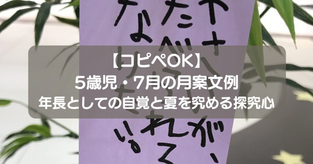 【コピペOK】5歳児・7月の月案文例|年長としての自覚と夏を究める探究心