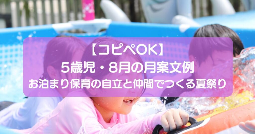 【コピペOK】5歳児・8月の月案文例|お泊まり保育の自立と仲間でつくる夏祭り