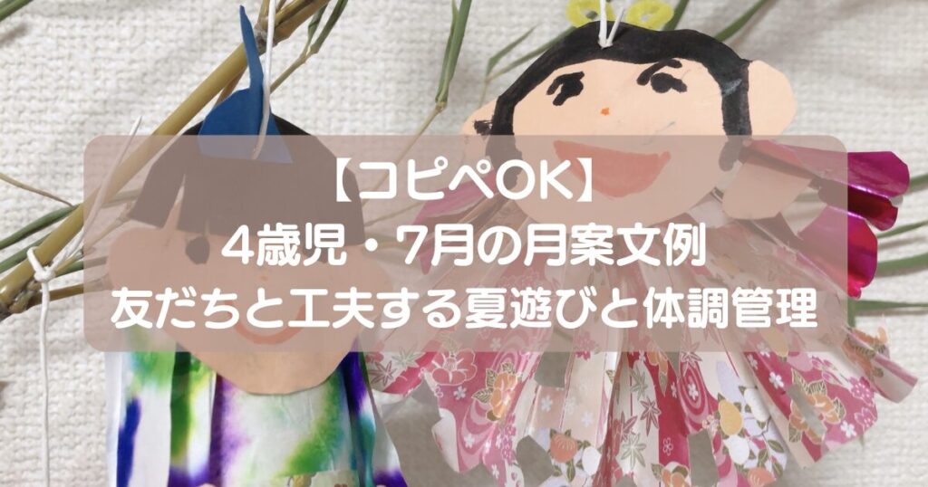 【コピペOK】4歳児・7月の月案文例|友だちと工夫する夏遊びと体調管理