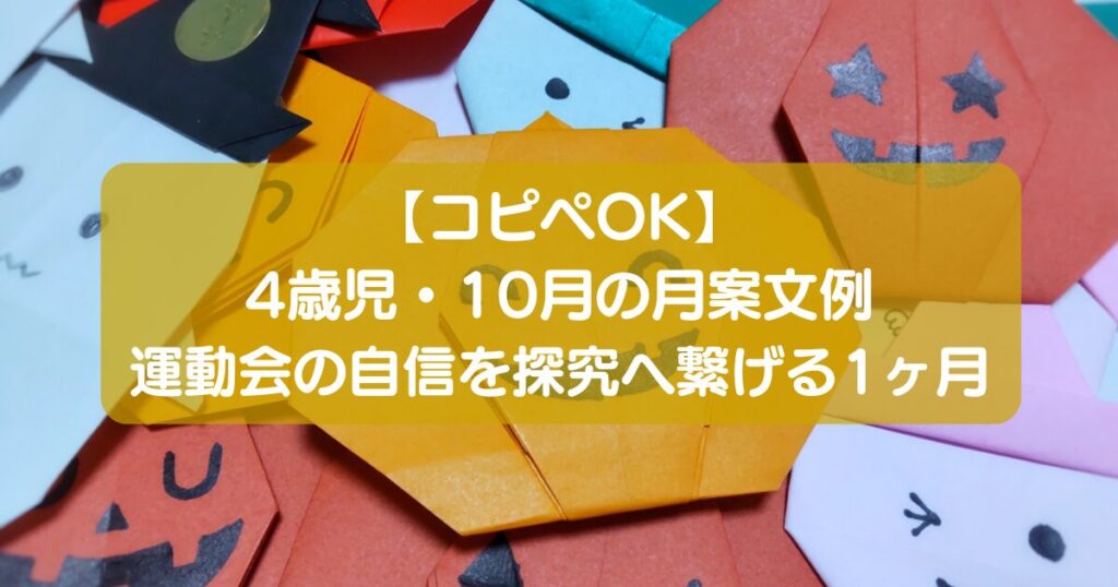 【コピペOK】4歳児・10月の月案文例|運動会の自信を探究へ繋げる1ヶ月
