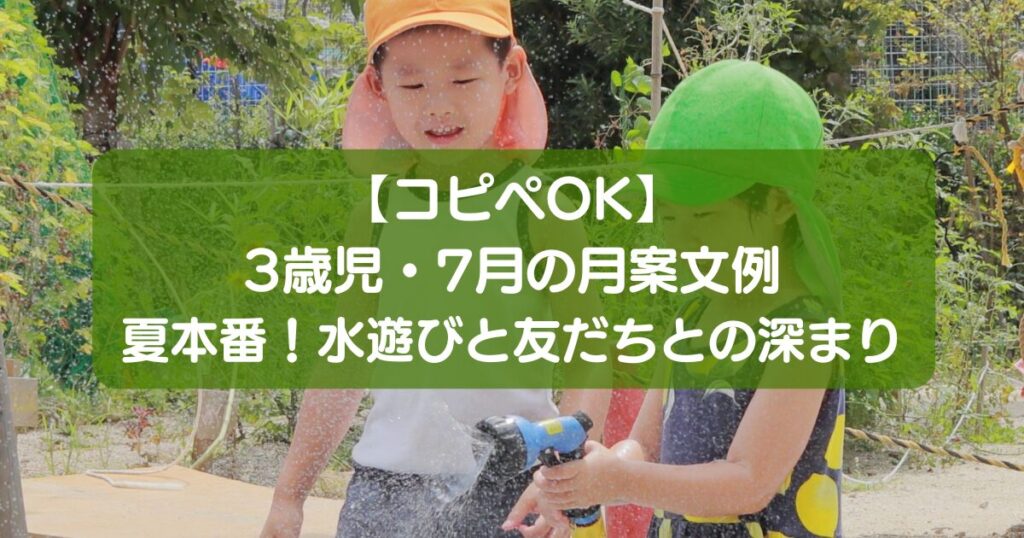 【コピペOK】3歳児・7月の月案文例|夏本番!水遊びと友だちとの深まり