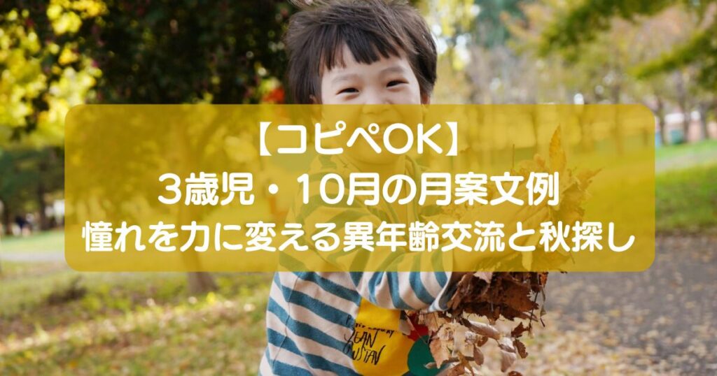 【コピペOK】3歳児・10月の月案文例|憧れを力に変える異年齢交流と秋探し