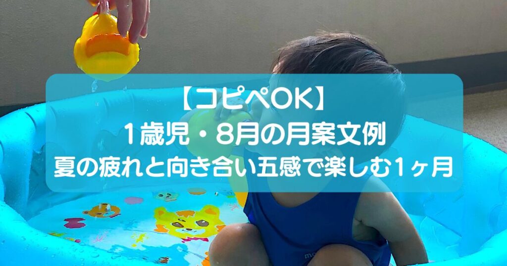 【コピペOK】1歳児・8月の月案文例|夏の疲れと向き合い五感で楽しむ1ヶ月
