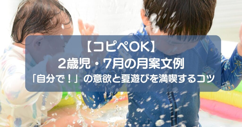 【コピペOK】2歳児・7月の月案文例|「自分で!」の意欲と夏遊びを満喫するコツ