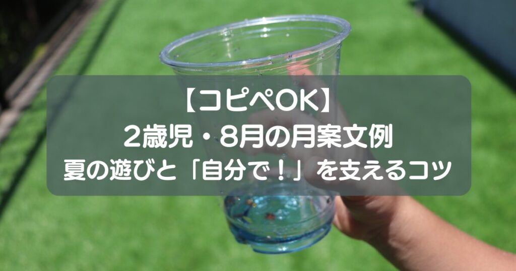 【コピペOK】2歳児・8月の月案文例|夏の遊びと「自分で!」を支えるコツ