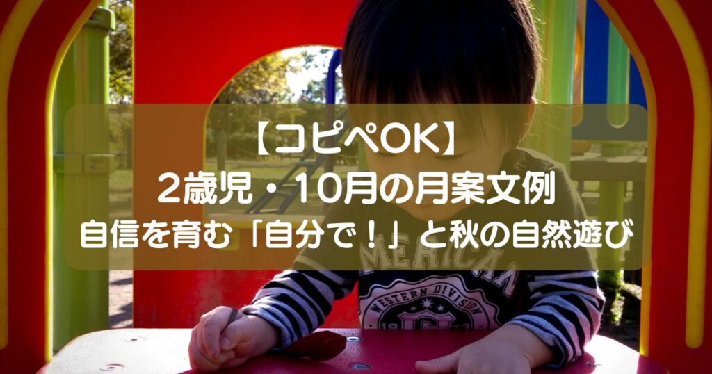 【コピペOK】2歳児・10月の月案文例|自信を育む「自分で!」と秋の自然遊び