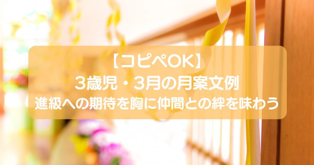 【コピペOK】3歳児・3月月案文例|進級への期待を胸に仲間との絆を味わう