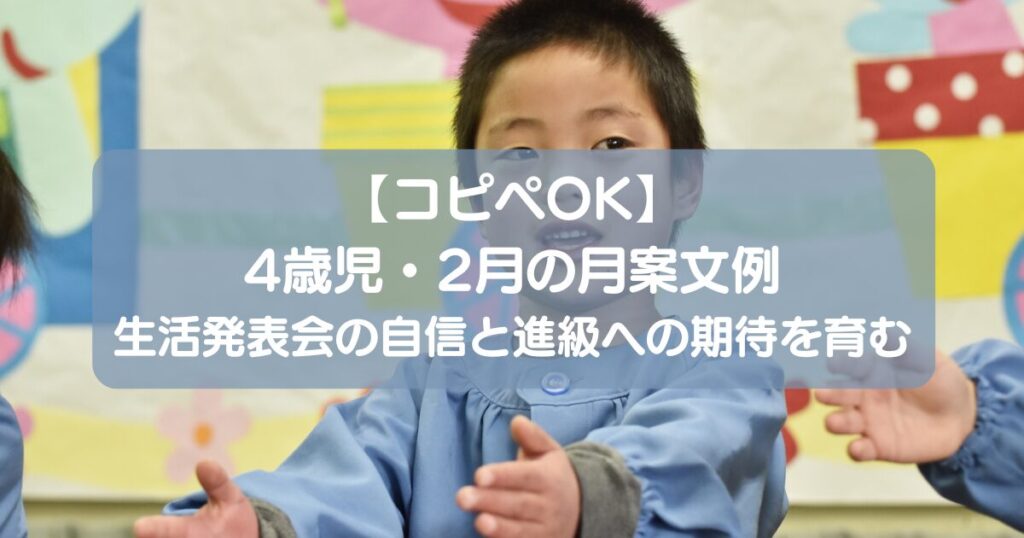 【コピペOK】4歳児・2月月案文例|生活発表会の自信と進級への期待を育む