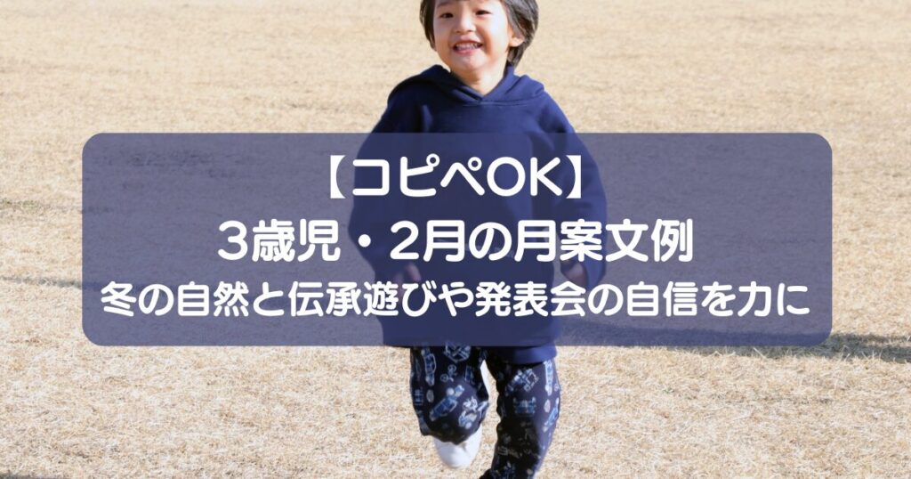【コピペOK】3歳児・2月月案文例|冬の自然と伝承遊びや発表会の自信を力に